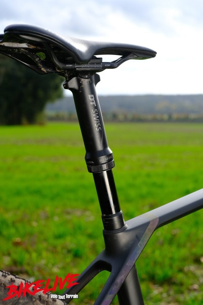La tige de selle DT Swiss est légère et offre le juste débattement. DR. Benjamin Lacoste