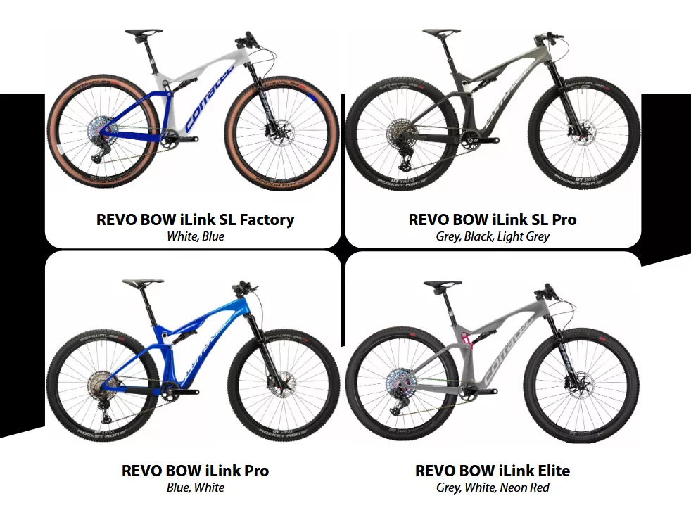 Ainsi, le REVO Bow se dote désormais du système de suspension iLink, développé par Corratec. On retrouve le design spécifique à la marque, en forme d’arc (« bow » en anglais) sur les tubes. Le concept iLink offre un subtil équilibre entre anti-squat et anti-rise : avec sa cinématique, son cadre en carbone léger, le transfert de puissance semble optimal en montée tout en offrant une précision affûtée en descente. Comme son aîné, il se destine bien sûr au cross country, down-country et le cross country eliminator.