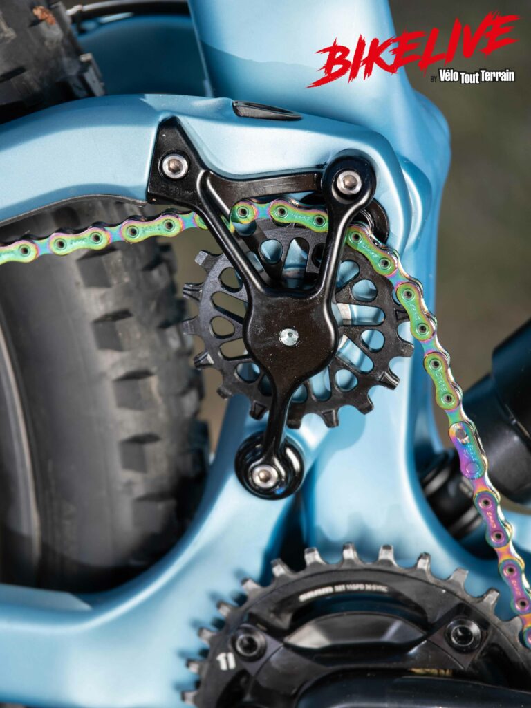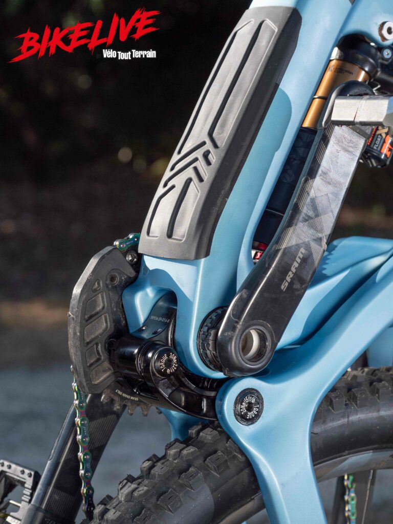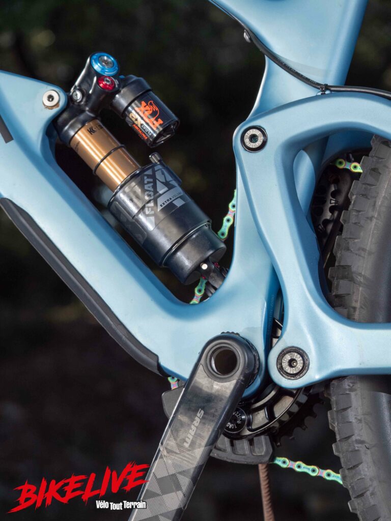 L’architecture de la suspension n’a rien de révolutionnaire et reprend ce qui existe en moto depuis des années… Sur le terrain cela fonctionne et permet d’avoir un vélo avec une polyvalence rare, proche d’un vélo de trail en montée et d’un vélo d’enduro en descente. En un mot : bluffant. DR. J. André