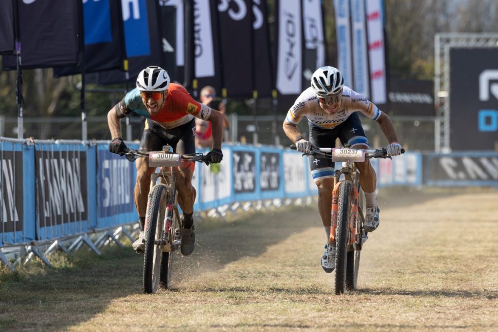 Et c’est au sprint qu’Hugo Drechou s’est imposé sur la ligne d’arrivée du Ford Roc Marathon,face à Fabian Rabensteiner, gagnant ainsi l’ultime manche des UCI MTB Marathon Series. 92.3 km précisément, agrémentés de 2440 m de D+, le tout réalisés en 4h3’51 ». Hugo Drechou s’impose donc devant Rabensteiner et Seewald, tenant du titre et, accessoirement actuel leader mondial sur les épreuves marathon. A noter, la belle prestation d‘Axel Roudil Cortinat, 6ème, et Stéphane Tempier qui sortait là pour la dernière course de sa carrière, a dû malheureusement abandonner.