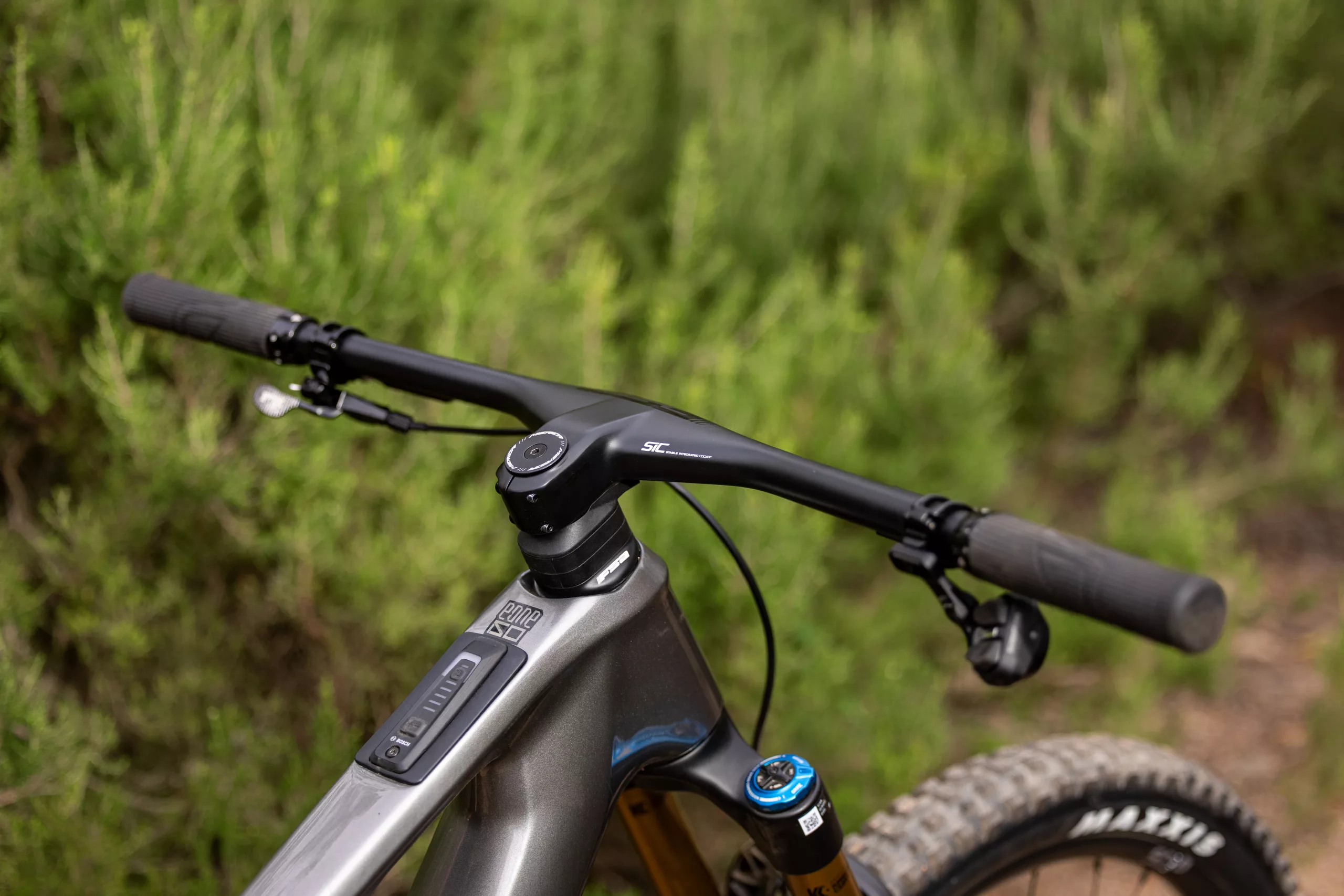 Impossible de rester insensible à l’esthétique du combiné cintre-potence NS SIC : un vrai bijou de technologie et de robustesse à la fois. Une option qui devrait intéresser ceux qui veulent un poste de pilotage optimisé. Conçu pour un usage allant jusqu’au trail (ASTM3), ce combo offre à la fois une précision accrue pour vos trajectoires, tout en affinant le look de votre vélo avec un petit plus en matière de rigidité évidemment. Entièrement en carbone, le NS SIC est proposé en 760 mm de large, avec un backsweep de 9° et un upsweep de 5° : il offre ainsi une position confortable sur de longues distances tout en combinant maîtrise accrue et légèreté avec seulement 285gr en version 60mm.. On peut choisir entre deux longueurs de potences, 60 ou 80 mm, avec -12° d’angle et le rise de 5 mm permet de trouver le juste équilibre entre confort et position optimale en descente. Il sera en bonne place aussi bien sur un VTT musculaire que sur un VTT-AE car sa conception en carbone monobloc lui confère une résistance exceptionnelle en complément de ses atouts principaux. Un choix pertinent pour les pilotes qui veulent se différencier avec un produit haut de gamme, construit pour durer et offrir des performances au delà de vos attentes. Pour affronter les terrains les plus exigeants.