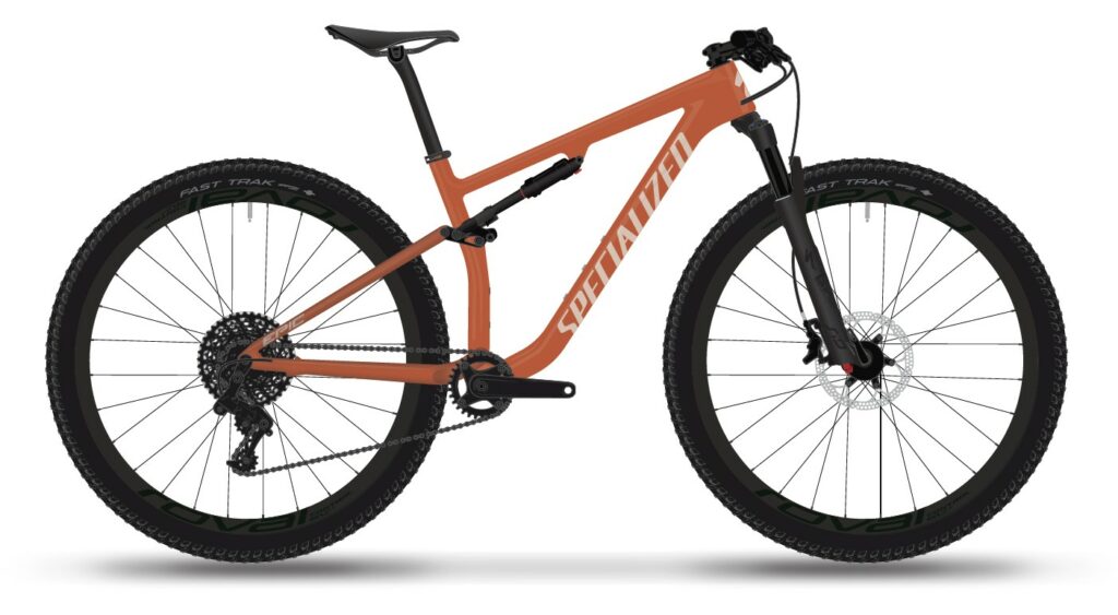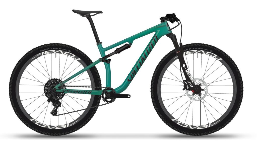 L’Epic existe en 4 modèles de 5500€ à 13500€ et un kit cadre à 6200€ – cadre full carbone FACT 11M (12M pour le kit cadre), progressive géométrie XC, 100 mm de débattement, système BRAIN.