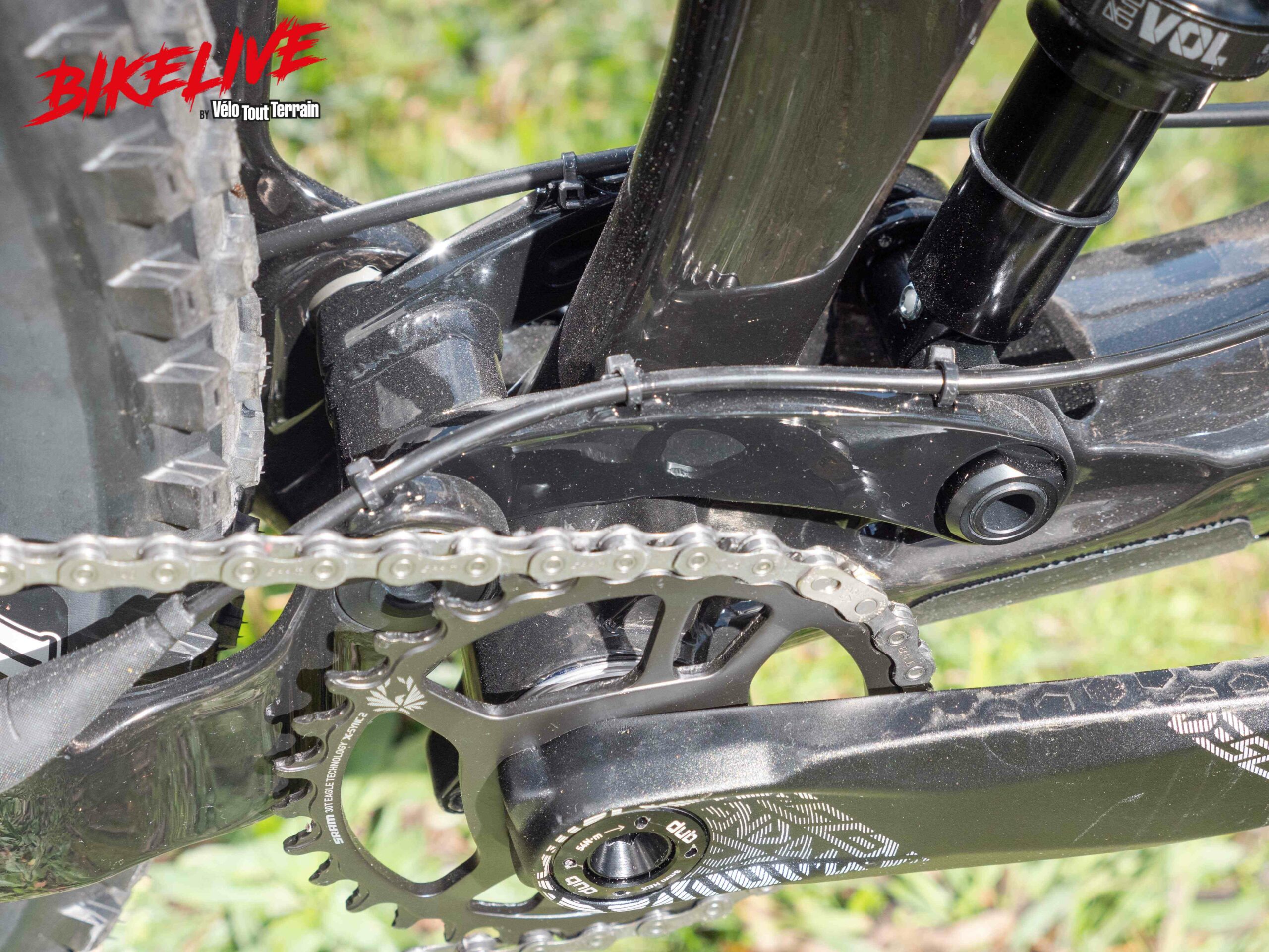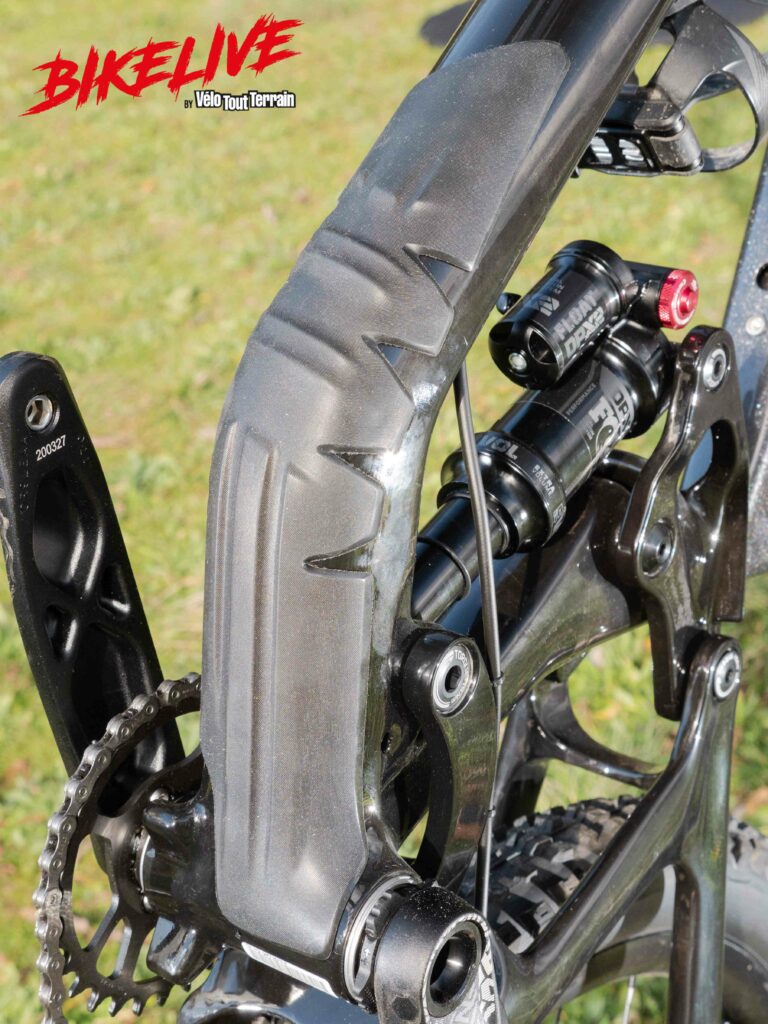 Le cadre Trance X est relativement bien protégé et il est surtout très silencieux à l’usage au niveau de la chaîne. On trouve une protection sur la base légèrement disgracieuse mais elle reste efficace. Au niveau du tube diagonal, la protection est un minimum pour des terrains cassants. DR. J. André
