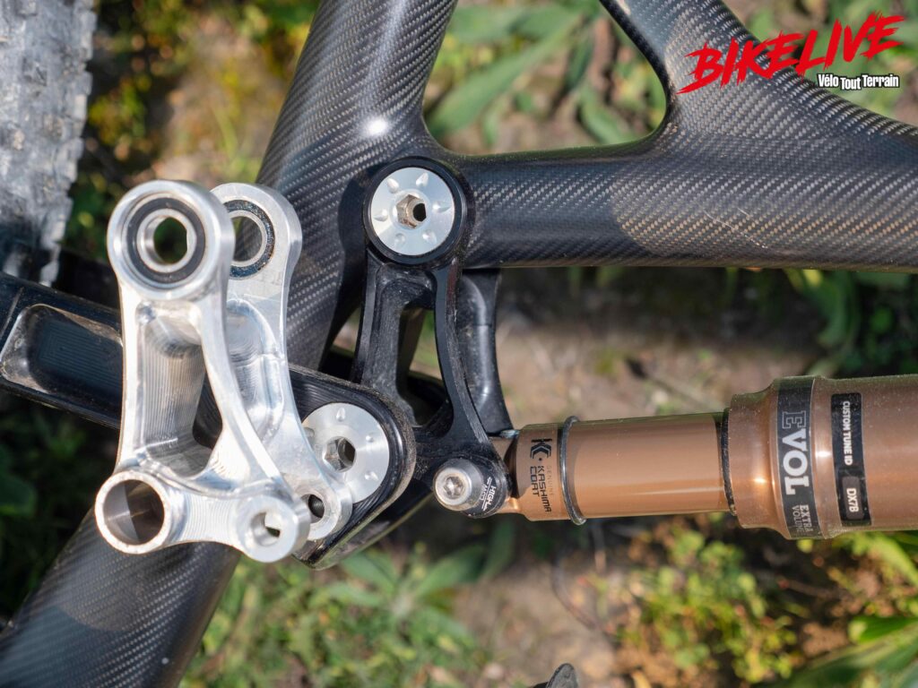 En version mulet, le vélo est encore meilleur dans la pente et dans les sections techniques. Nous pouvons nous permettre de freiner plus tard et nous gagnons quelques précieux millimètres de mobilité au niveau de la roue arrière. Nous pouvons ainsi franchir des gros obstacles ou ruptures de pente sans danger ou plus vite. Dans cette configuration, nous nous sommes même aventurés à rouler sur une course d’enduro régionale. Le vélo nous a surpris car malgré son débattement contenu, il a tenu la cadence permettant de performer mais surtout de s’amuser. Il faut cependant faire attention sur le fait que le mulet assoit encore un peu plus le vélo sur l’arrière et, couplé avec ce type de cinématique, peut parfois rendre le vélo un peu trop léger de l’avant, surtout si nous nous positionnons en arrière sur les talons…