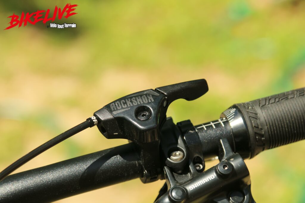 Première chevauchée et tout de suite, là encore, deux choses me sautent aux yeux : la selle offre un confort d’assise de folie (confirmé tout au long de l’essai) et la position m’a donné l’impression d’avoir déjà roulé sur ce vélo. C’est dire si le poste de pilotage et la géométrie ont été bien étudiés pour offrir ce type de ressenti. Très bon point sans avoir roulé 100 m donc. Pesé à plus de 15kg, le bébé n’est pas chétif et pourtant, sur le plat, il se laisse plutôt bien emmener, il faut l’avouer. Les pneus sont ni bons, ni mauvais, ni trop cramponnés, ni pas assez pour notre partie plus technique. Je déroule les jambes avec facilité et c’est assez déconcertant dans la première grosse montée : mais où sont ces kilos ? Seul un frottement du disque arrière légèrement voilé m’a peiné dans cette ascension. Pour le reste, pas d’effet de pompage marqué. Bien campé sur le bec de selle, ça monte sans coup férir tout en avalant le terrain. La seule remarque concernera le plateau de 32 dents : un choix curieux pour cette gamme d’usage car il faut les mollets pour l’emmener. J’aurai plus vu un 30 dents plus capable de vous soulager dans les raidars. Bref, j’attaque ma partie roulante de liaison pour rejoindre les singles. Là aussi, les relances, sans être foudroyantes car il ne faut pas exagérer non plus, sont néanmoins honnêtes et je m’aperçois que le blocage de la fourche au guidon…ne sert à rien en fait. La RockShox 35 Gold RL se montre assez surprenante, même avec mes 89kg tout mouillé, je la trouve assez réactive même s’il faut, comme d’habitude, mettre un poil moins de pression que recommandé pour profiter pleinement du débattement et que le réglage de détente…ne détend pas grand chose. Ça ou rien, c’est pareil, ça sautille beaucoup trop. L’arrière suit sans soucis et les relances sont vives, sans excès donc. La position se confirme comme étant vraiment confortable, au point de pouvoir envisager des sorties bien longues sans problème.