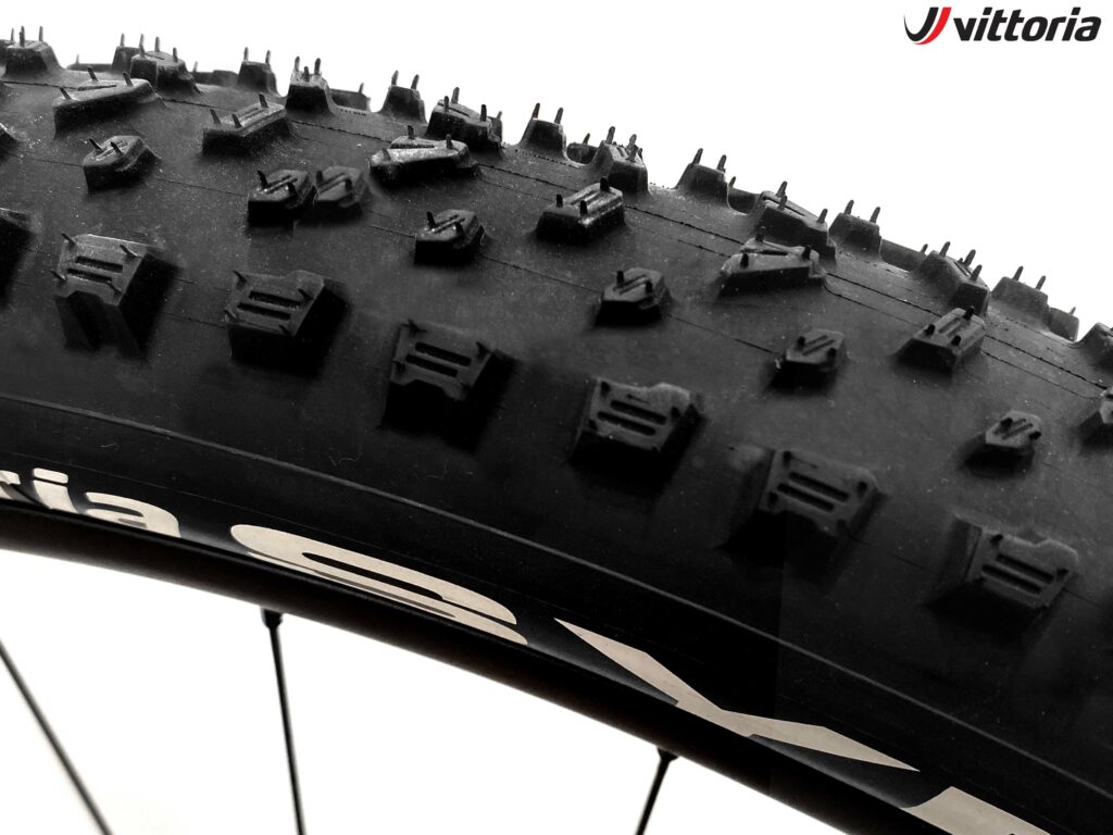 L’espacement des crampons permet d’obtenir un dégagement de la boue plus rapide et les sculptures centrales sont dotées d’un gradin antérieur pour permettre de maintenir la vitesse tout en offrant une prise plus efficace autant en montée qu’en virage.