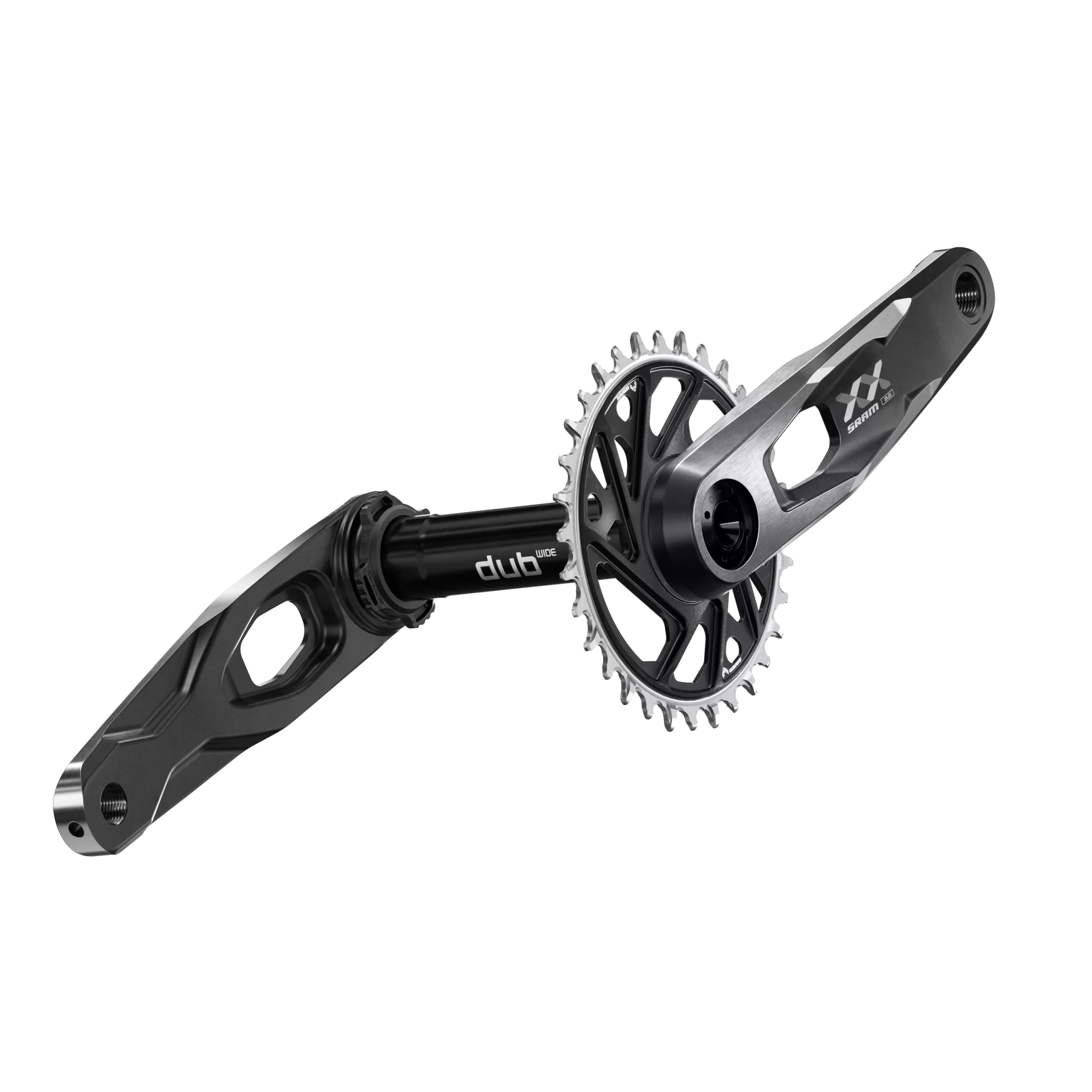 Côté pédalier, les manivelles XX DH arborent une surface usinée pour préserver plus longtemps leur aspect d’origine malgré une forte exposition à l’usure et aux chocs. Mais aussi, pour une plus grande garde au sol et un plus grand choix dans l’équilibrage des masses, les manivelles XX DH sont disponibles en différentes tailles de 165 mm à 150 mm; boitier DUB DH, plateau 32-36 dents? Notez aussi que le groupe XX DH est compatible avec les étoiles active Ochain en plateau 104BCD XX T-Type.