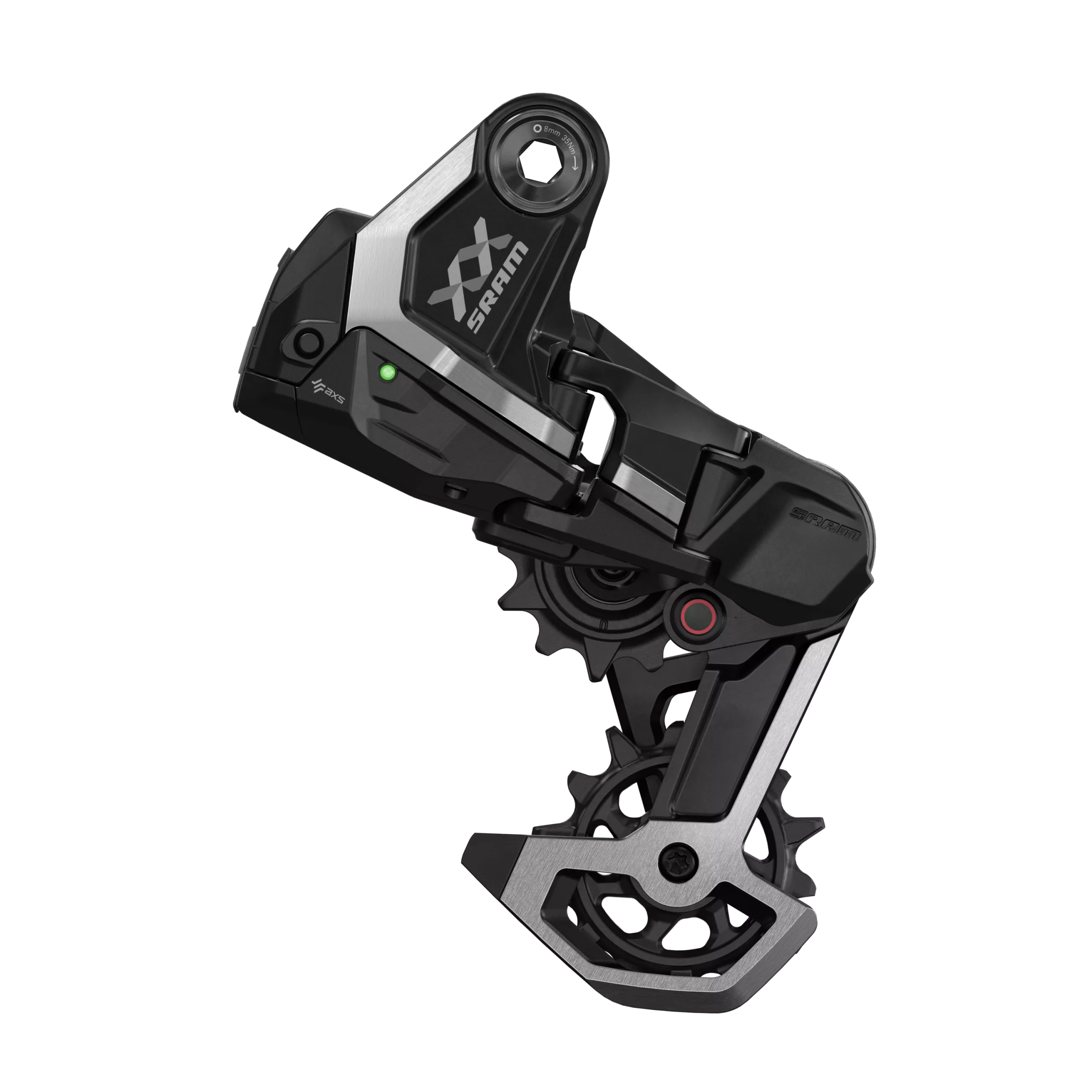 La transmission XX DH utilise la technologie Cassette mapping qui permet de passer les vitesses de la casette 7 rapports (10-24 dents) sans alléger le pédale et donc en pleine puissance et sans perdre de temps; la cassette X-Sync, associé au micrologiciel AXS permet d’exploiter cette technologie pour un transfert de puissance continu. Le dérailleur arrière UDH reprend l’architecture des modèles Transmission et avec le système Full Mouht qui se fixe de part et d’autre du cadre et permet à ce dernier de pivoter vers l’arrière en cas de choc. Positionné autant que possible vers l’intérieur, le dérailleur XX DH est constitué de composants remplaçables (plaques de protection, parallélogramme, chape InLine) afin d’augmenter sa durabilité.