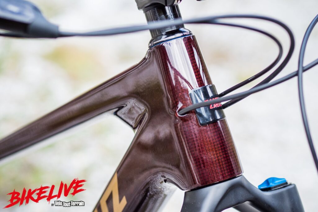 En descente, il faut prendre la mesure de la rigidité de l’ensemble, entre le châssis tout en carbone CC, les roues en carbone et la fourche avec ses plongeurs de 38 mm diamètre. Mais le temps d’adaptation est rapide du fait de l’extrême confort des suspensions. Nous n’allons pas cacher que nous avions quelques appréhensions à rouler en 27.5 » sur un tel débattement après avoir passé beaucoup de temps sur du 29 ». La peur de voir la roue avant buter et se faire éjecter sur l’avant…