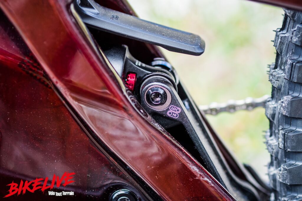 Attention, suivant la position choisie, il faudra ajuster les suspensions différemment. Nous avons fait le test avec une précontrainte et des ajustements équivalents, et dans ce cas le vélo était soit trop souple et rapide en détente en position basse ou inversement en position haute. Nous avons presque 10 psi de différence entre les deux positions sur l’amortisseur à ressort pneumatique et il faut donc en tenir compte au niveau des ajustements, notamment en compression et détente haute vitesse.