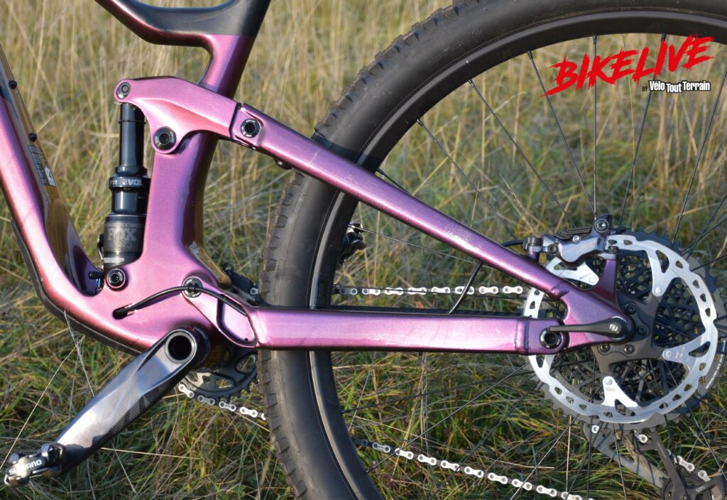GEOMETRIE : Taille : S – Tube supérieur : 571-569 mm (Low-high) – Tube de selle : 420 mm – Angle de direction : 64,5-65° – Angle de tube de selle : 75-75,5° – Bases : 438-436 mm – Empattement total : 1183-1181 mm – Hauteur de boîtier : 353-346 mm – Reach : 406-412 mm – Stack : 613-610 mm – FICHE TECHNIQUE : Tailles : S, M, L – Modèle d’essai : S – Cadre : triangle av. carbone et ar. alu – Fourche : Fox 38 Float Performance Elite Fit 4, déport 44 mm – Amortisseur : Fox Nude TR Evol DPS – Freins : Shimano XT M8121 4 pistons, disques SM-RT76 ø203/180 mm – Dérailleur arrière : Sram GX Eagle 12v. – Pédalier : Sram GX Eagle, 32 dents – Commande : Sram Eagle GX – Cassette : Sram Eagle XG 1275, 10-52 – Roues : Syncros Revelstoke 2.0 30 mm – Pneus : av. Maxxis Assegai Exo+, 3C Maxx Terra 29 x 2.60” ; ar. Maxxis Dissector Exo+ 3C Maxx Terra, 29 x 2.60” – Potence : Syncros XM1.5, 40 mm – Cintre : Syncros Hixon 1.5, 800 mm – Tige de selle : Fox Transfert Performance Elite, 150 mm, ø 31,6 mm – Selle : Syncros Savona V-Concept 1.5.
