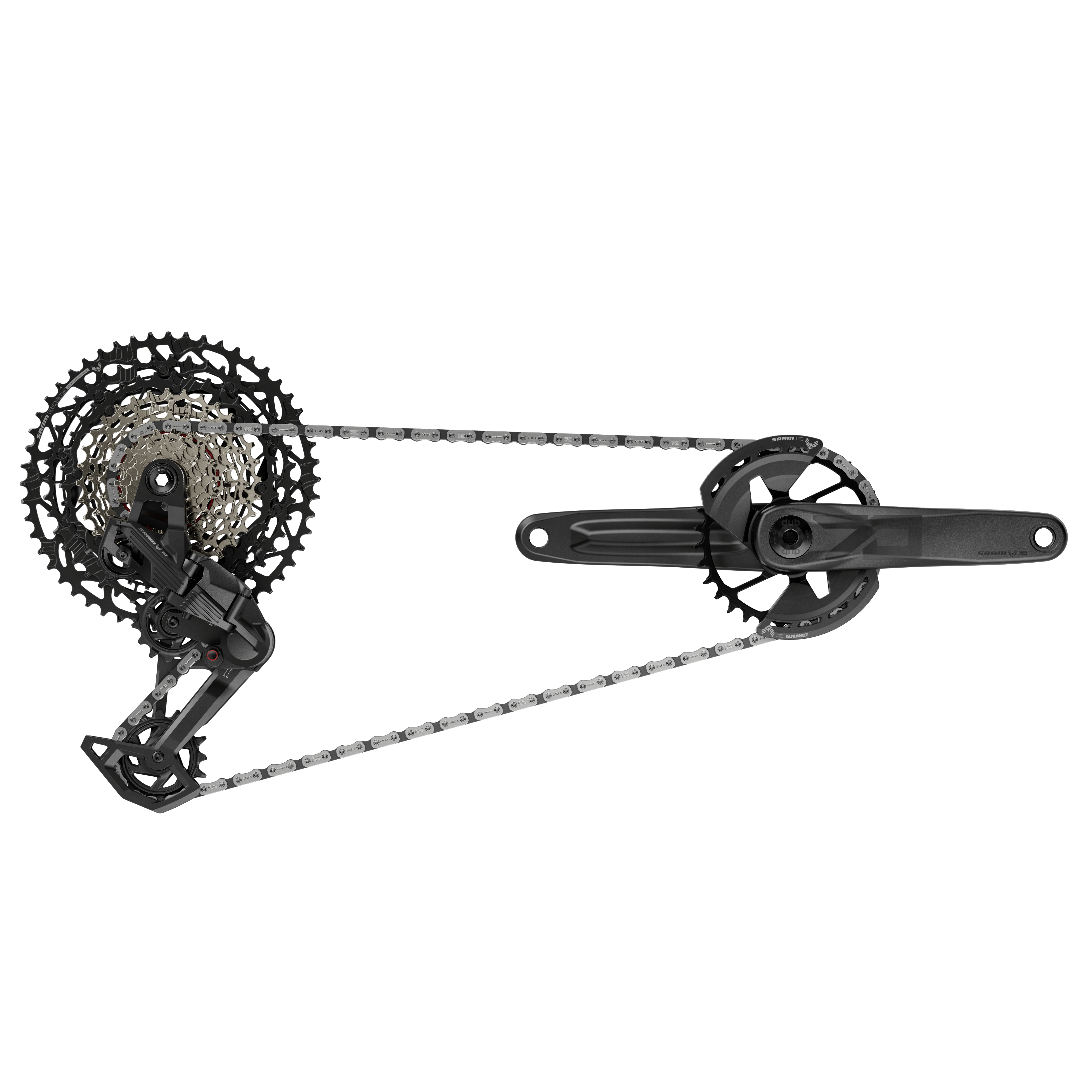 Le groupe se compose d’un dérailleur, d’une cassette X-Sync 10×52, d’une chaine, d’un pédalier (longueur 150, 160, 165, 170 et 175 mm) et d’une commande de vitesse (Single Click pour les VAE ou Double Click pour les musculaires); cela vaut aussi bien pour le modèle 90 (réf.1275) que le 70 (réf. 1270). Le groupe Eagle 70 Transmission offre une robustesse radicale n’est égalée que par sa fiabilité et sa simplicité. Le modèle 70 arbore un design harmonisé et entièrement compatible avec l’ensemble des composants T-Type formant le fondement de l’écosystème Eagle Transmission.