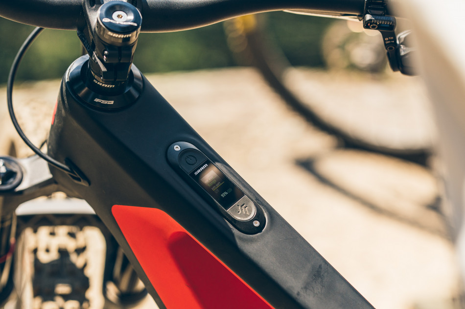 SRAM vient donc de passer un gap en proposant désormais tout un système complet pour les VAE; ce système est composé principalement d’un moteur Eagle Powertrain développé par Brose offrant 90Nm de couple en pointe et jusqu’à 680Wh, là aussi en pointe, en mode Rally; le mode Range réduit quant à lui le couple et l’assistance pour augmenter l’autonomie. Deux batteries sont proposées : 630 et 720Wh plus une batterie additionnelle de 250Wh (le range extender).