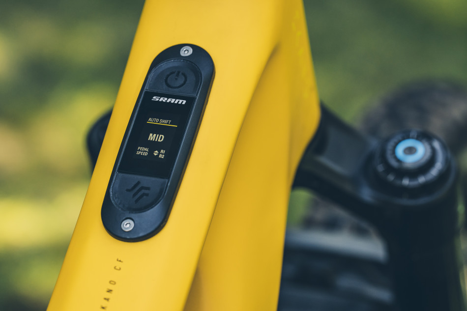 Le passage des vitesses peut se faire automatiquement ou manuellement avec les Pods de commandes sur le cintre. Cela permet notamment de pouvoir changer de rapport sans devoir tourner les manivelles grâce à la roue libre du pédalier, débrayable avec le Coast Shift que nous détaillons plus bas.